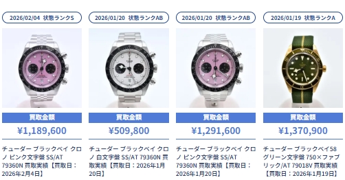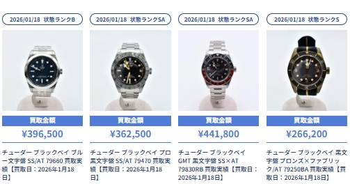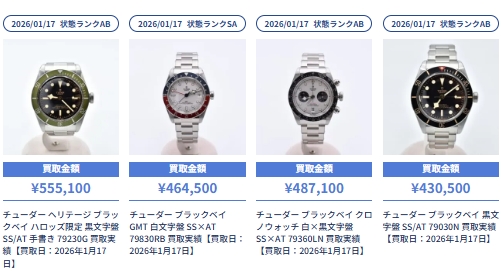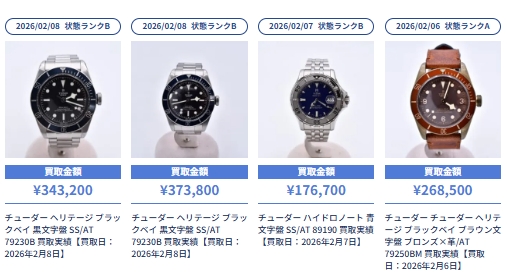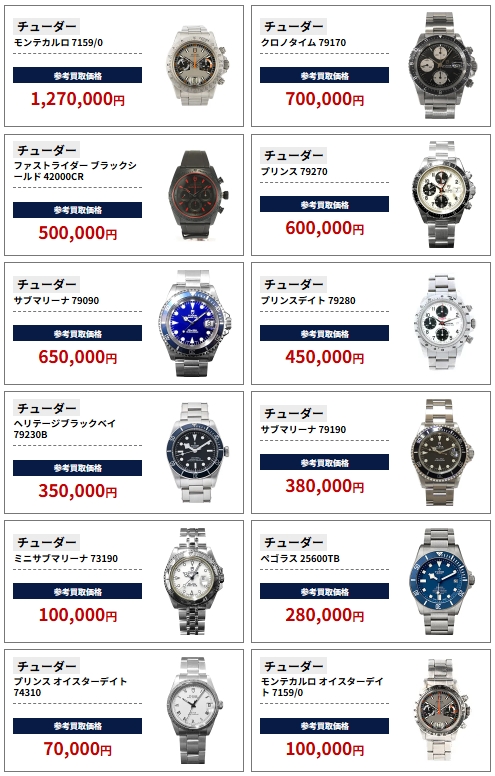ブラリバの「チューダー買取参考価格」を調べてみました。