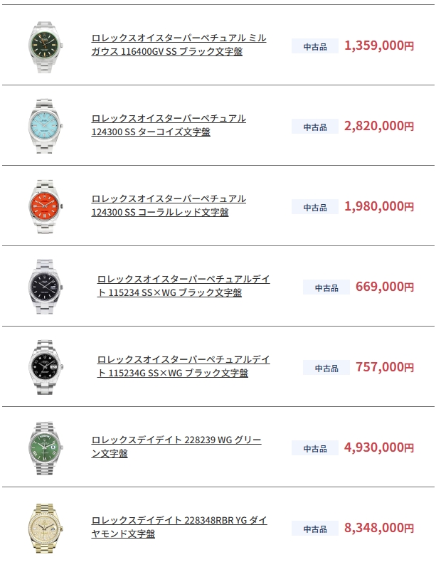 ロレックスなど高価な時計だともっと差が付くことも。