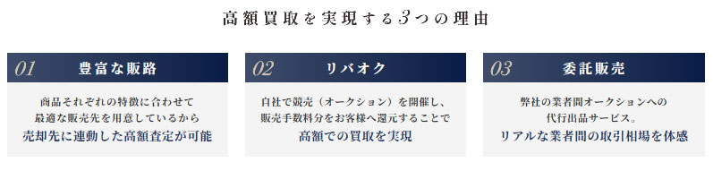 全国対応ではありませんが、エリアを限定し、無店舗経営をすることにより、運営コストを抑え、時計の高価買取を実現しています。
