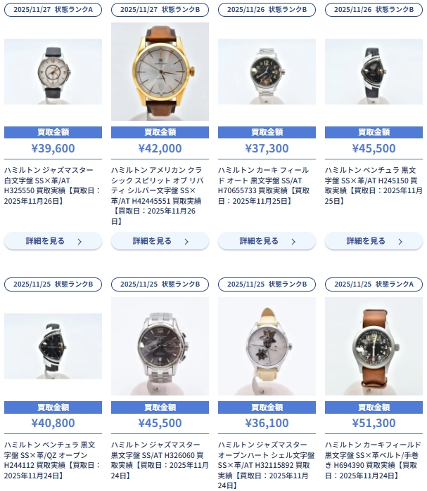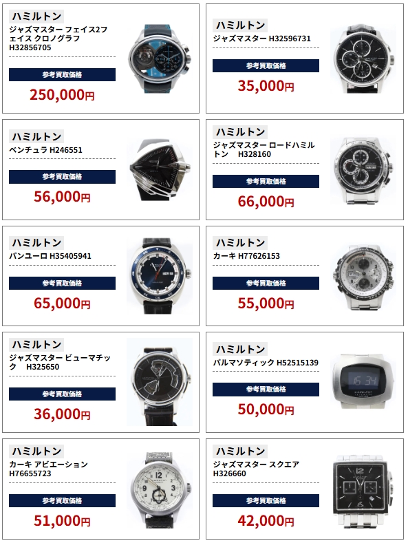 ブラリバの「ハミルトン買取参考価格」を調べてみました。