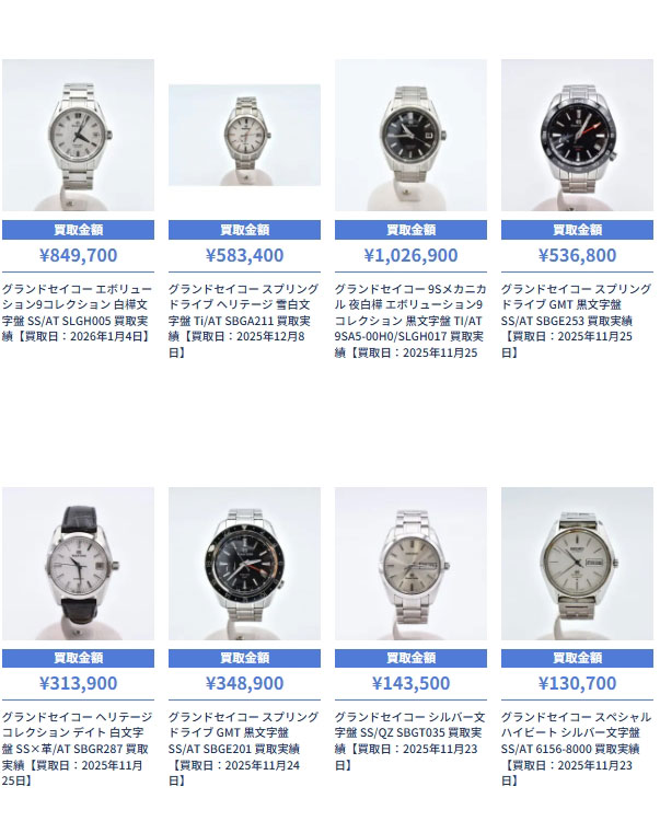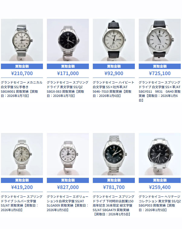※これはほんの一部です。その他、グランドセイコーの買取実績は多数。